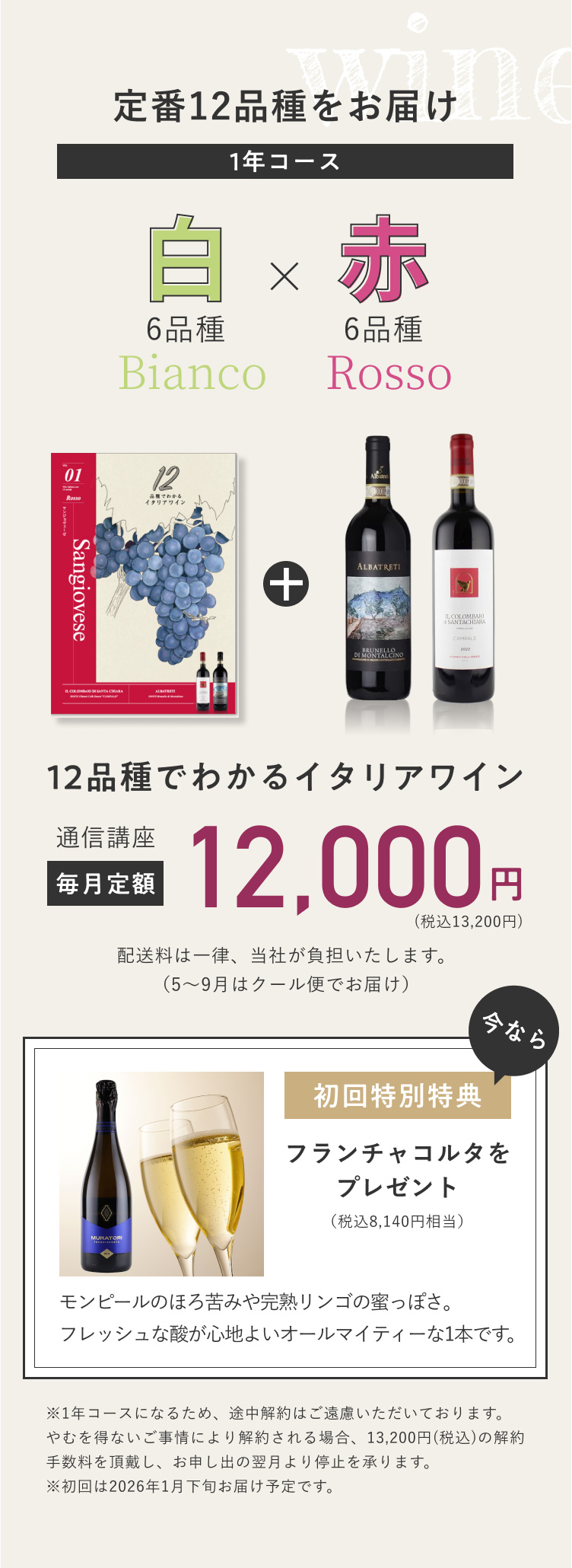 もとは甘口ワイン品種だったが、1990年代の濃厚赤ワインブームの影響もあり時代が求めたメジャー品種へと変貌を遂げた。最新設備で醸造された現代版サグランティーノを堪能ください。