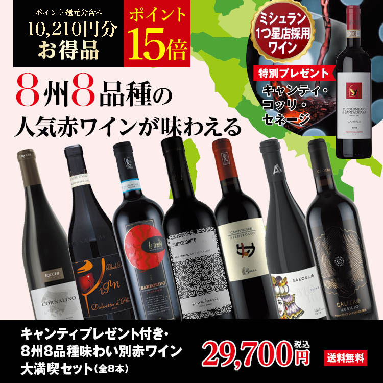 【ポイント15倍】キャンティプレゼント付き・8州8品種味わい別赤ワイン大満喫セット(全8本)